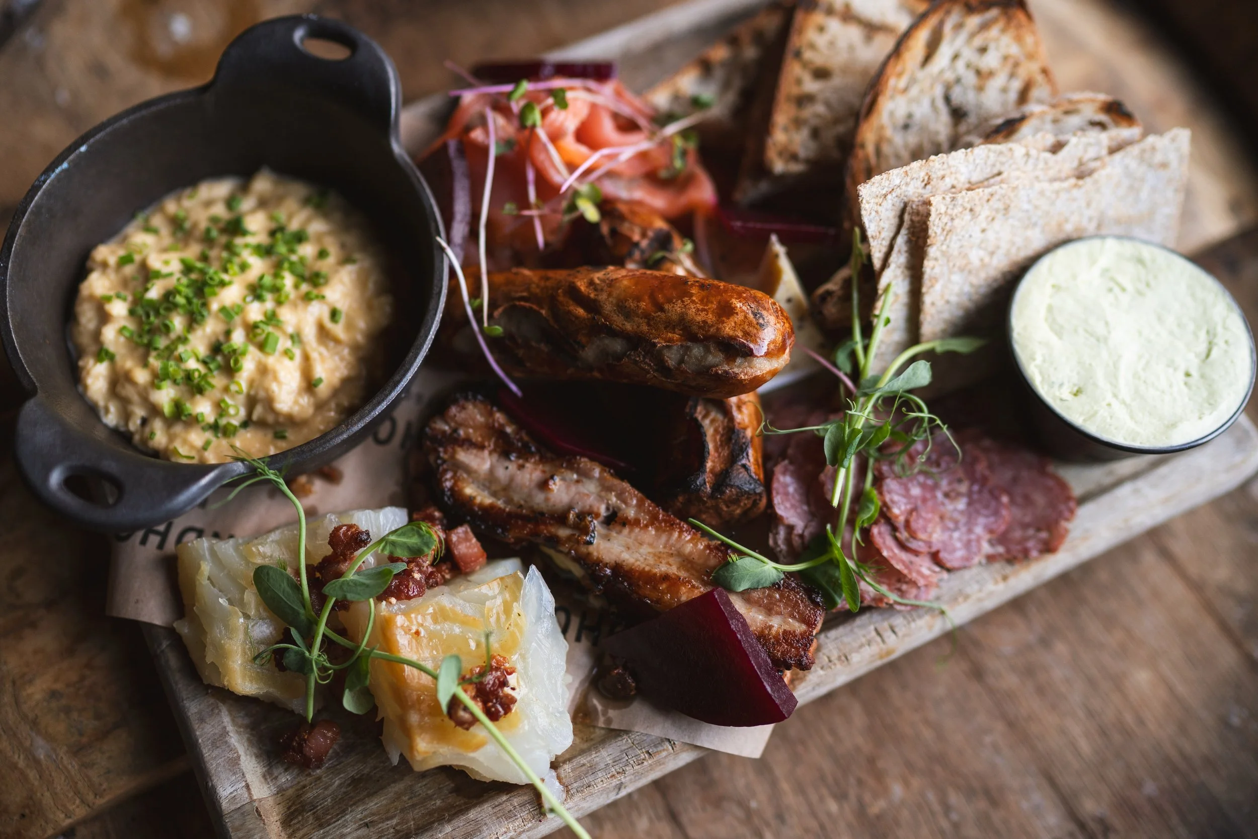 Våre menyer er sesongbaserte og oppdateres jevnlig. Her kan man finne en kombinasjon av klassisk pubmat, norsk tradisjonsmat og internasjonale retter.